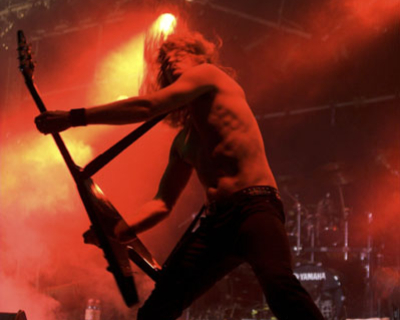 Thyrfing waren im Prinzip das böse Pendant zu Turisas. Wo die mit Blut besudelten Waldläufer aus Finnland mit Fidel und Akkordeon gute Laune verbreiteten, machten die dreckbeschmierten Schweden Ernst und so gab es Bodenständigen, Gitarrenlastigen Viking-Metal um die Ohren, der sich zwar rhytmisch abwechslungsreich, aber hauptsächlich im Midtempo-Bereich abspielte. Die Menge ging ordentlich ab und auch ich erwischte mich, wie ich kopfnickend dem ganzen aus gebührendem Abstand lauschte. Viking liegt im Trend und wird es wohl noch eine Weile so bleiben, wenn man sich anschaut wie energisch auf allen Festivals dementsprechende Bands abgefeiert werden.